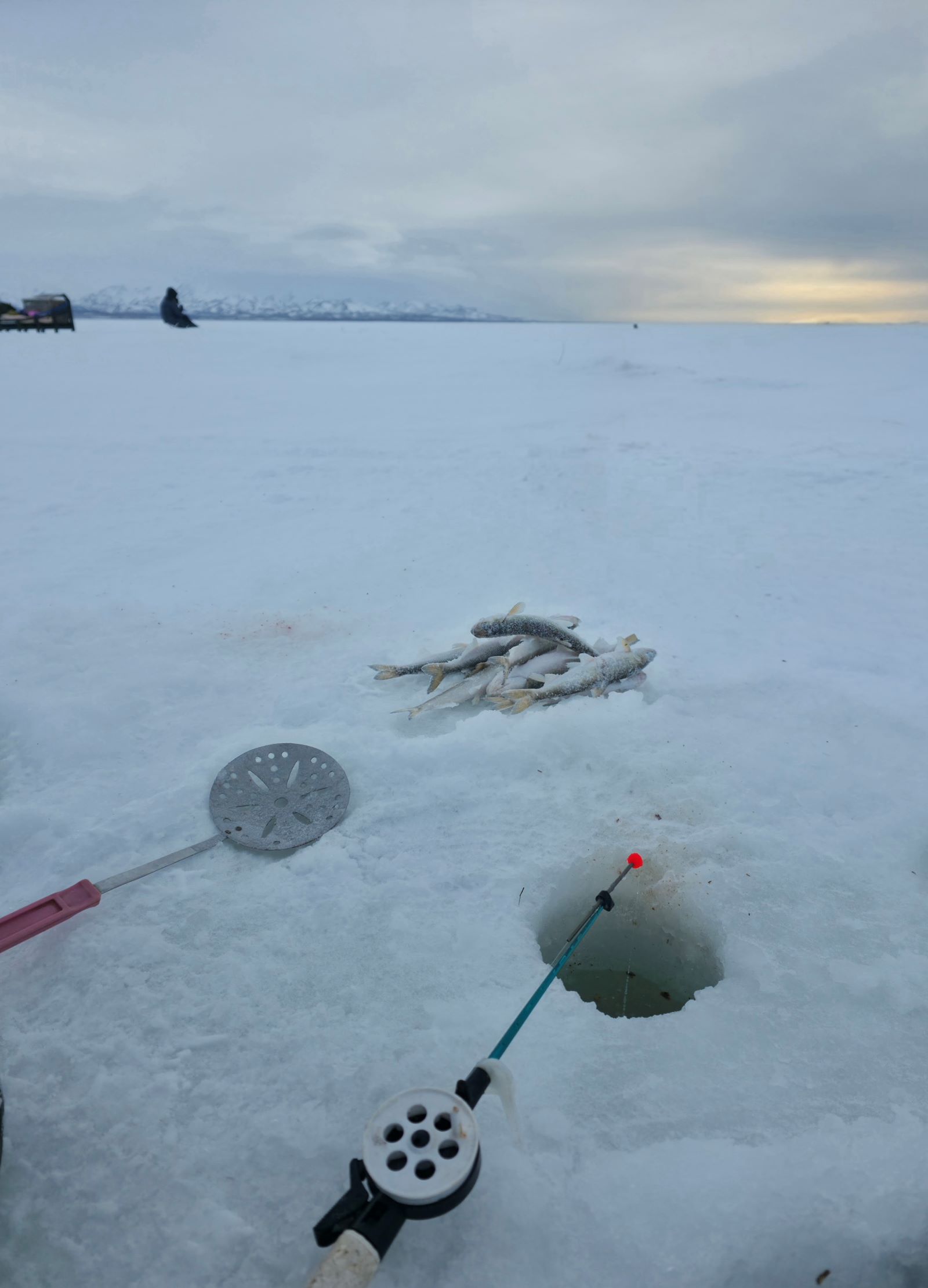 зеро Нерпичье является одним из крупнейших нагульно-нерестовых водоемов корюшки азиатской зубастой в Камчатском крае. Во второй половине декабря в озеро начинает заходить на нагул созревающие рыбы. Нагульные миграции продолжаются в течение всей зимы и первой половины весны. В апреле-мае корюшка нерестится. Именно в зимне-весенний период, когда в озерах формируются значительные нагульные скопления, здесь осуществляется массовый подледный любительский лов. В сезон 2025 года среднесуточные уловы вида были низкими, в отдельные дни корюшка попадалась штучно. О невысоких уловах сотрудникам филиала сообщали и местные жители.